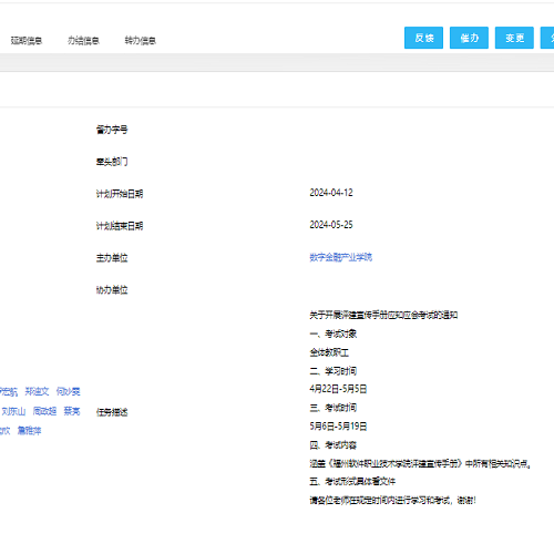 2024年5月6日,根据《福州软件职业技术学院第二轮人才培养工作评估迎评工作方案(修订)》等相关文件的要求,数字金融产业学院开展了评建宣传手册应知应会考试,旨在全面推进学校的二轮评建工作。此次考试共有38名教职工参加,全部顺利通过。在考试期间,学院全体教职工认真学习,积极完成考试。