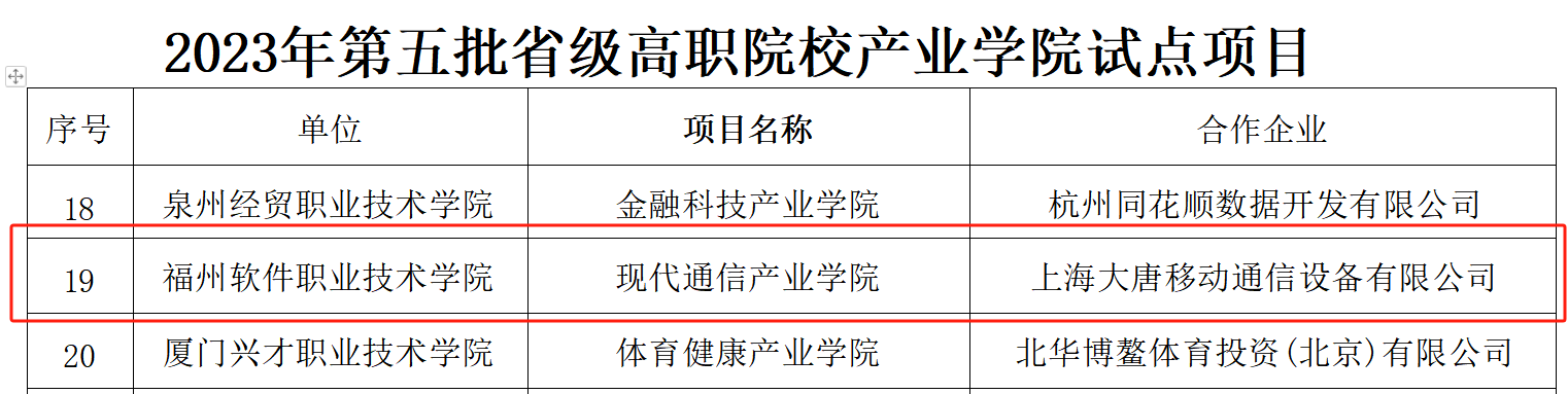 现代通信产业学院获批第五批省级高职院校产业学院试点项目;